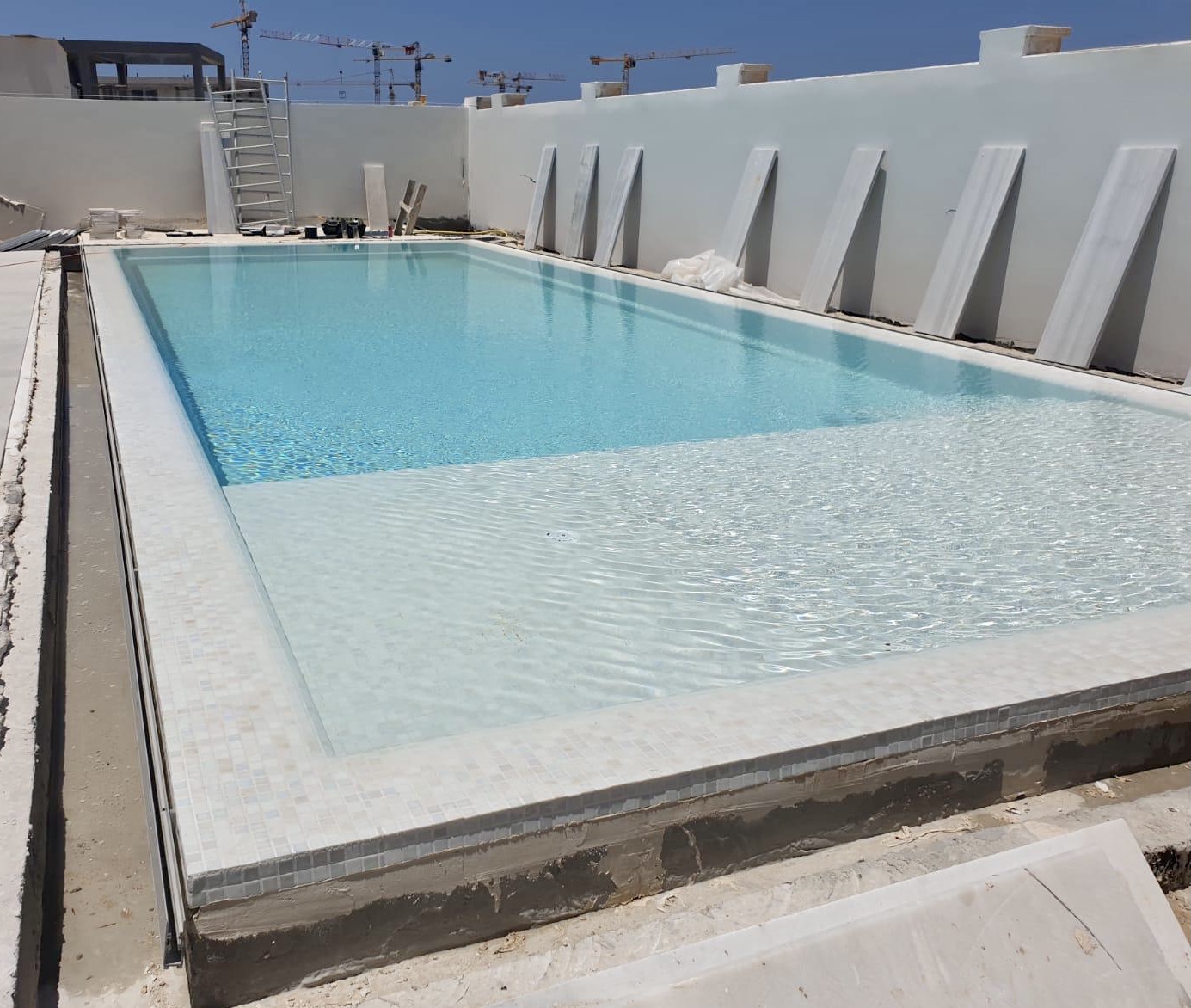 7. חיפוי פנים הבריכה – נבחרים ומותקנים חיפויים פנימיים מפסיפס, קרמיקה איכותית או יריעות PVC, שמשדרגים את מראה הבריכה ומגנים עליה.