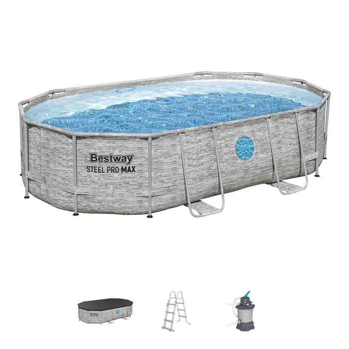דף הבית » בריכות INTEX Bestway » בריכות Bestway » בריכה אובלית עם חלונות 4.88X3.05X1.07 + משאבת חול 950 גלון דגם : BESTWAY – 56946