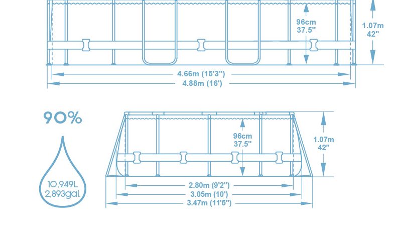 גובה הבריכה: 107 ס״מ (42 אינץ')