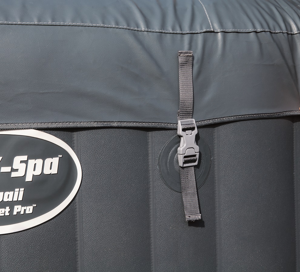 - כיסוי הג'קוזי המתנפח וסגירתו ע"י אבזמים מאפשרים סגירה אופטימלית ובכך שומרים על חום המים.