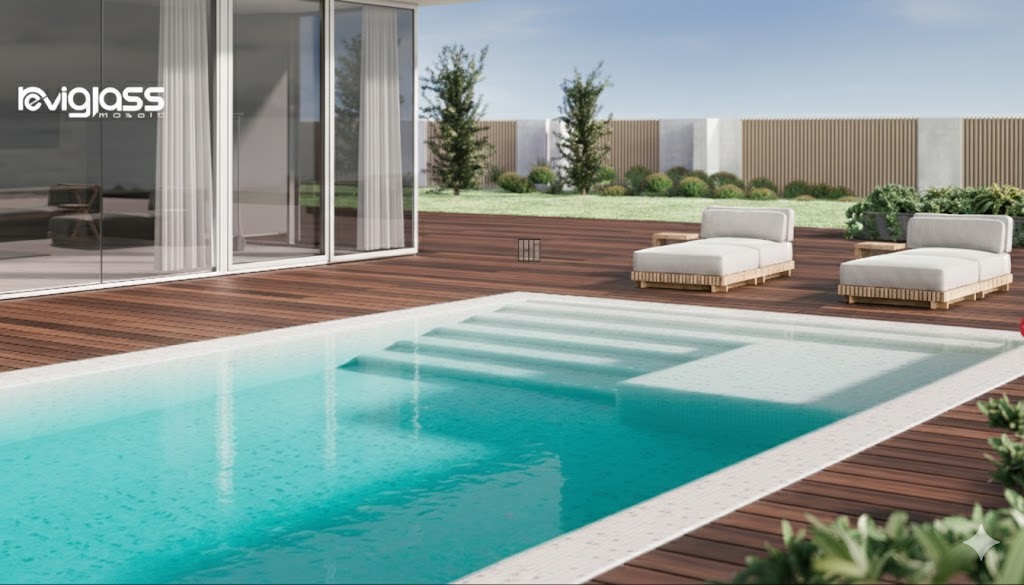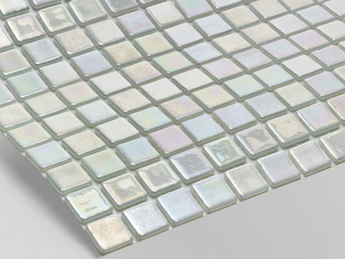 פסיפס זכוכית יוקרתי מבית REVIGLASS בגוון לבן־פנינה עם אפקט איריזנטי עדין, היוצר מראה מבריק, נקי ואלגנטי. מתאים במיוחד לחיפוי בריכות שחייה, ספא, ג’קוזי, מקלחות וחיפויי קיר דקורטיביים, עם עמידות גבוהה לאורך זמן גם בתנאי מים וכימיקלים.