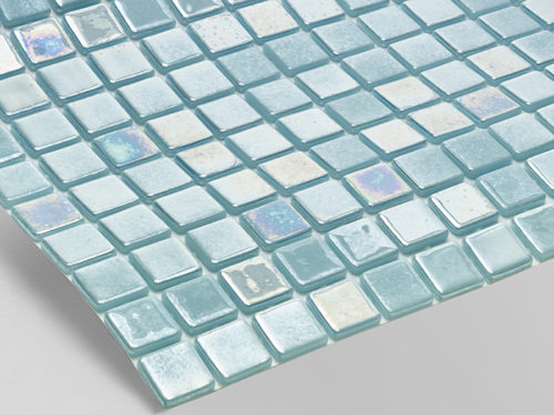 פסיפס זכוכית יוקרתי מבית REVIGLASS בגוון תכלת־בהיר עם אפקט איריזנטי עדין, המדמה את צבעי המים ויוצר מראה רענן, עמוק ויוקרתי. הבחירה המושלמת לחיפוי בריכות שחייה, ספא וג’קוזי, עם משחקי אור מרשימים במגע עם מים ותאורה.