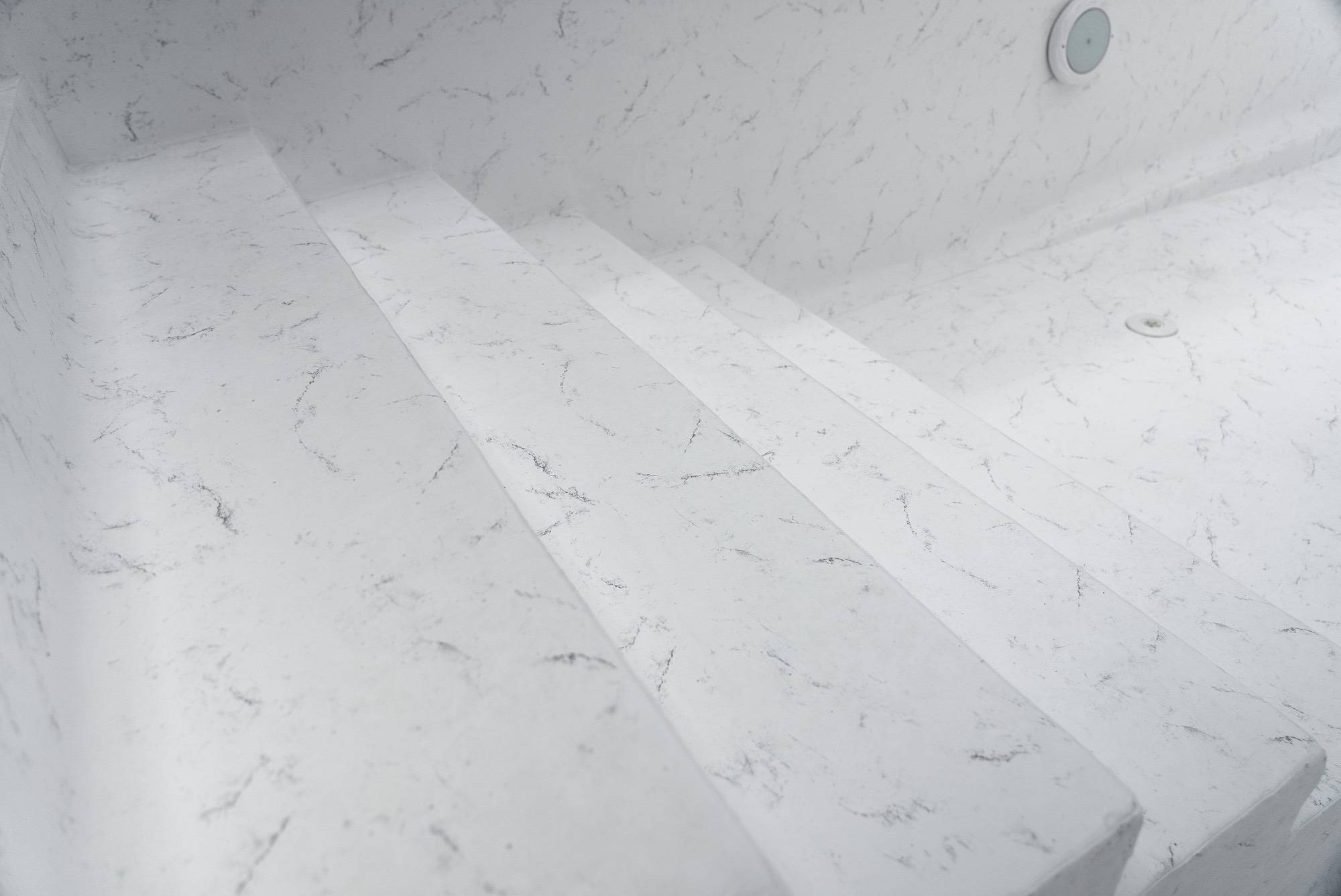 עיצוב Royal מביא אל הבריכה אלגנטיות מעודנת, עם משטח תלת‑ממדי המדמה אבן אמיתית בגווני אפור טבעיים עמוקים. מחוץ למים מודגש המראה המינרלי האותנטי, ואילו בתוך המים הבריכה משתנה לגוון כחול מלכותי מרהיב – לחוויית שחייה יוקרתית, חיונית ומרשימה.